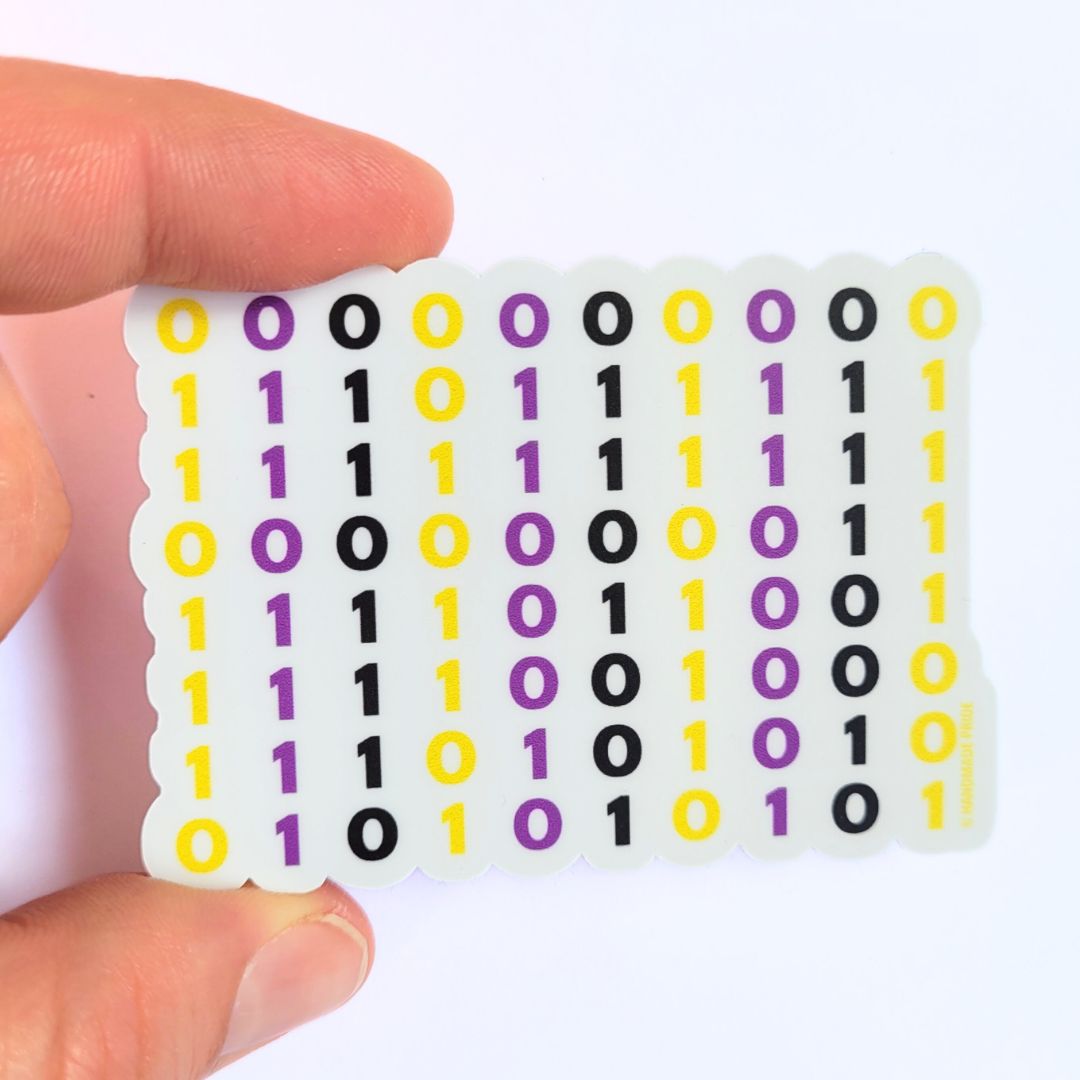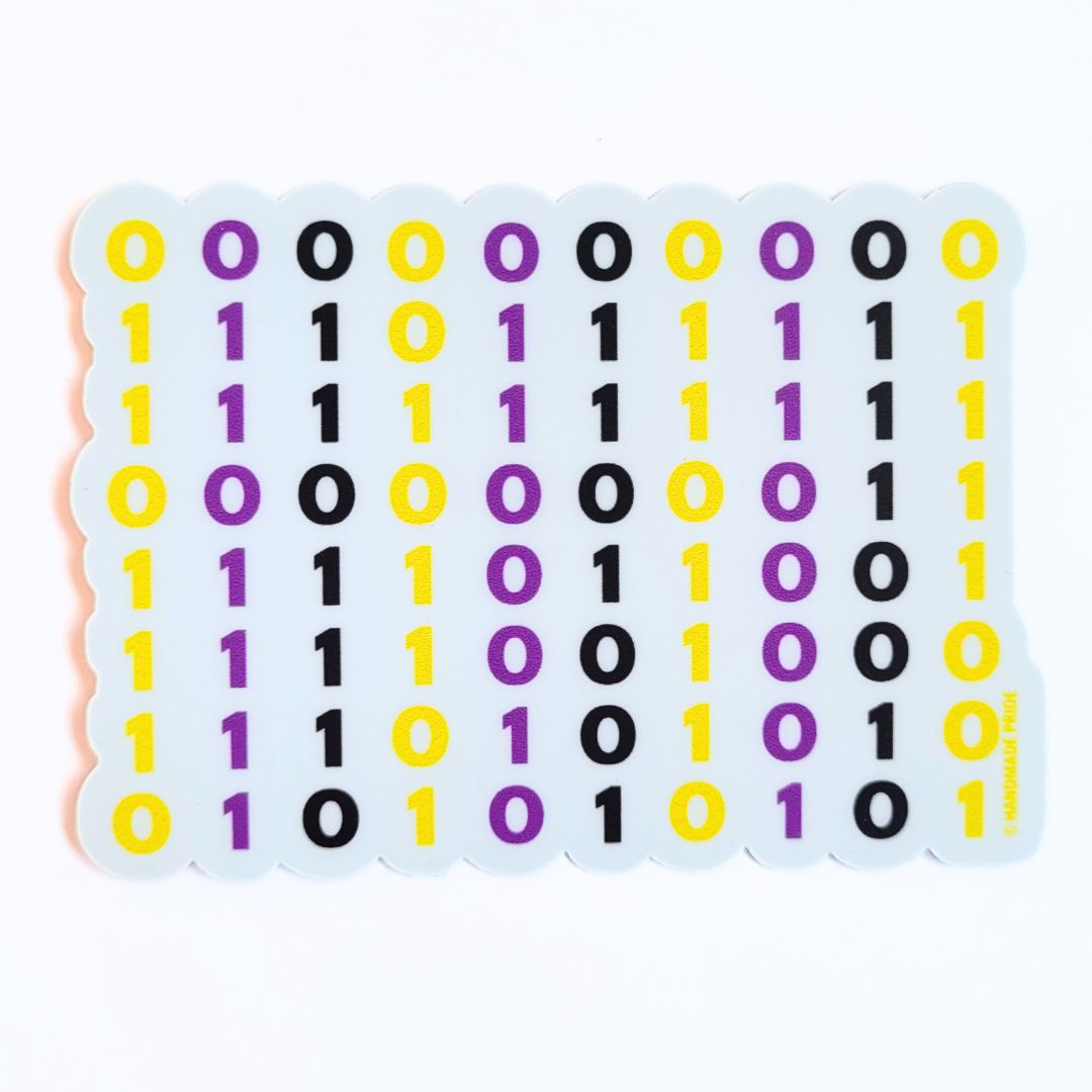 🔹This waterproof sticker is the perfect blend of computing puns and non-binary pride.